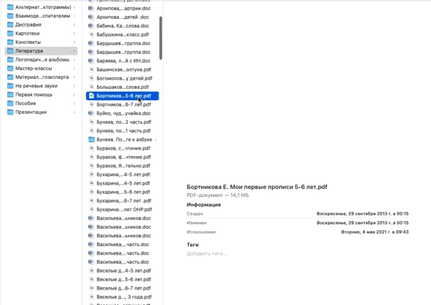 - 300+ книг и тетрадей - 20 разделов с пособиями - 11 разделов с неречевыми звуками - 10 разделов с картотеками - 5 разделов с документацией